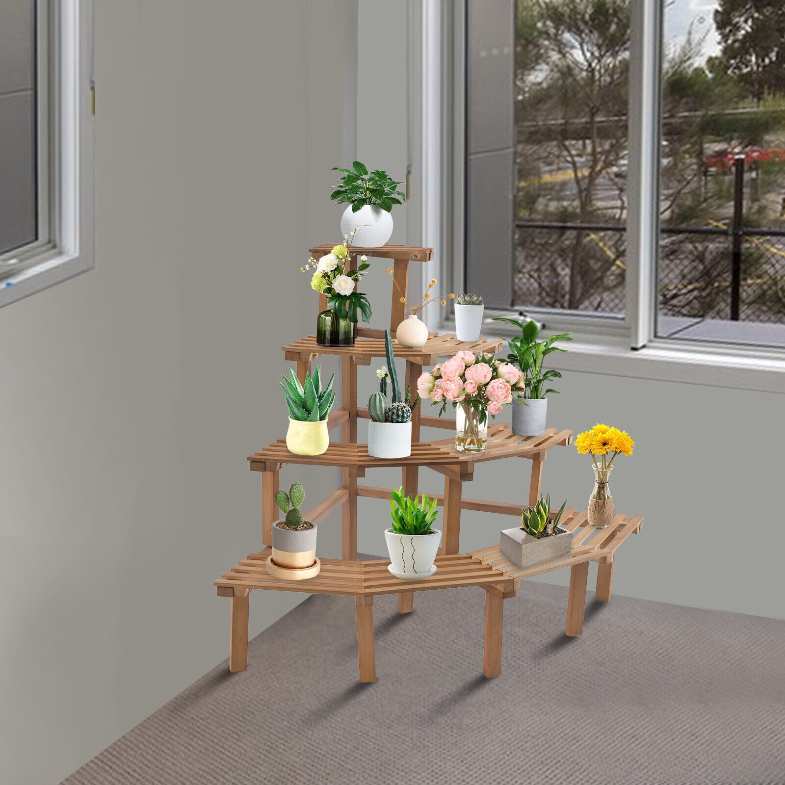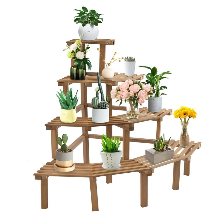 Miumaeov Ladder Plant Stand 4 Tier Indoor Outdoor Corner Plant Shelf Wood Plant Stand Rack Organizer Display Quarter Round Flower Pots Holder For Garden Patio Balcony Living Room Walmart Com