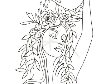 Watering Flower Girl Line Drawing Line Art Growing Mind Wall Etsy