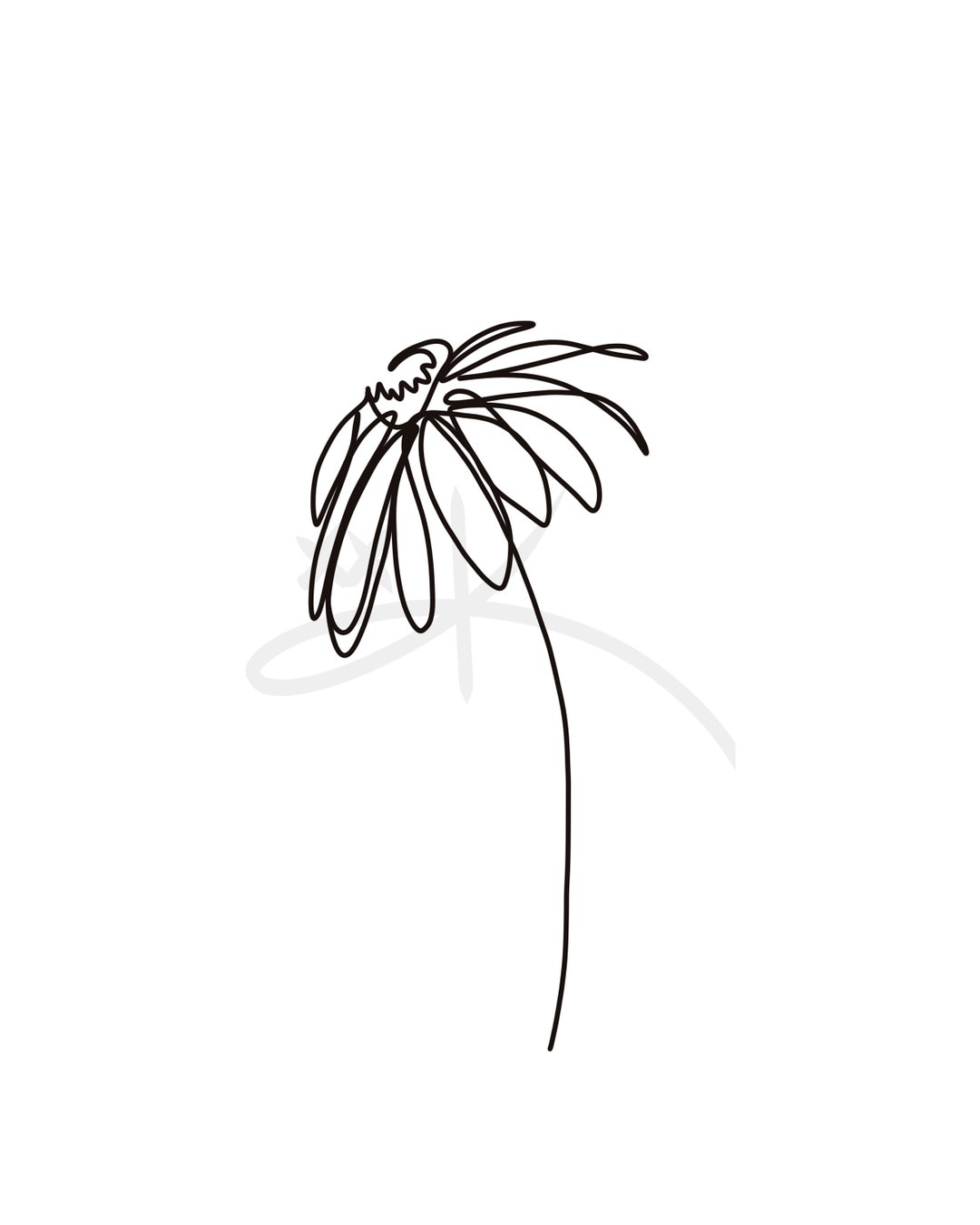 Daisy Line Art Wall Art One Line Drawing Black And White Etsy
