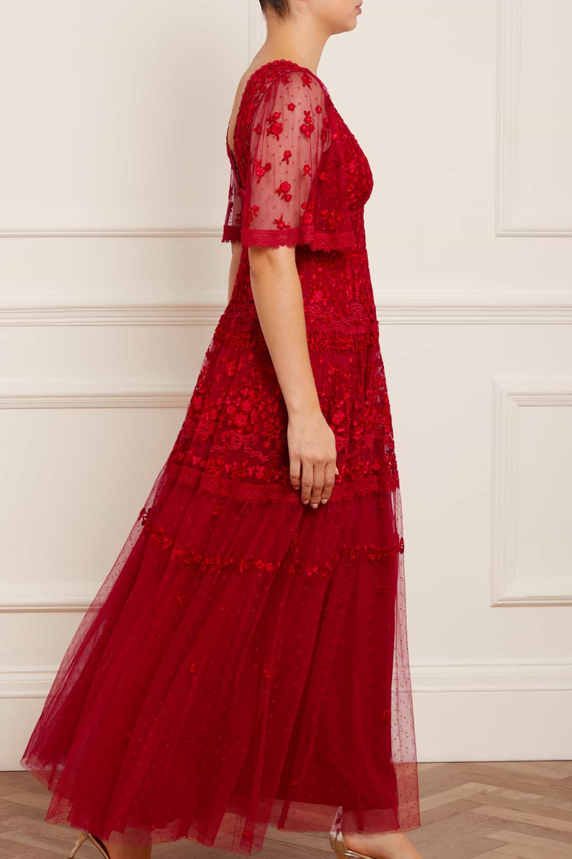 Bex Sequin Floral Wrap Dress In Sustainable Viscose Red Evening Dresses Monsoon Uk